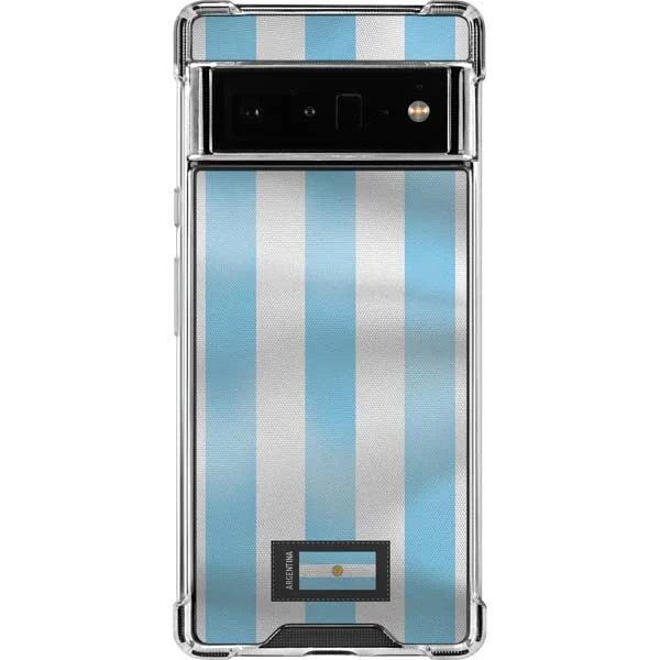 Shades of blue and grey topped off with Argentina’s flag, the Argentina “Soccer Flag” Google Pixel Clear Case is an essential Google Pixel accessory for any Argentina fan. Influenced by Argentina’s national team jerseys, you’ll be able to rep your home country all year long with the Argentina “Soccer Flag” Google Pixel Clear Case. A Skinit Countries of the World Google Pixel Clear Case is crafted with transparent phone case materials to guard your Pixel 6 Pro smartphone from everyday drops, scratches and dust. The 4 Corner Air-Pocket Shock Bumper makes this Pixel 6 Pro case a must-have accessory if you want to shield your Google Pixel in a stylish, minimalistic way. Decorated with the Argentina Soccer Flag 3M vinyl decal skin, you’ll love how this is Countries of the World Clear Case for Pixel 6 Pro looks on your Google smartphone!