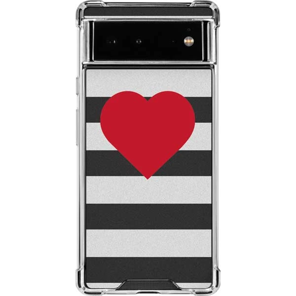 Protect and personalize your Google Pixel smartphone with Skinit’s Black And White Striped Heart Clear Case! This Red Pixel 6a phone case is lightweight and perfect for protection against accidental daily wear and tear and drops. Finished with the Black And White Striped Heart decal skin, this transparent Red case for Google Pixel is a must-have!