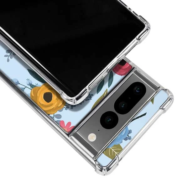 This Blue Fall Flowers Google Pixel Clear Case displays a subtle vibrancy of Riverside Blue. The Blue Fall Flowers Google Pixel Clear Case provides the protection and sophistication your Google Pixel device needs. The Blue Fall Flowers Google Pixel Clear Case is built with transparent phone case materials to shield your Pixel smartphone from daily dust, scratches and wear and tear. Equipped with a 4 Corner Air-Pocket Shock Bumper and a raised front bezel, this Blue phone case allows you to protect your Pixel 7 Pro in a stylish, minimalistic way with added protection for your phone’s screen. Completed with the Blue Fall Flowers 3M vinyl decal skin on the back of the case, you’ll love how this is Blue Google Pixel Clear Case looks on and protects your smartphone.