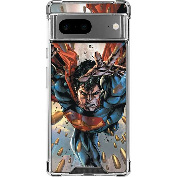 This Skinit Superman Clear Case for Google Pixel guards your Google Pixel smartphone from dust, dirt and scratches in a minimalistic yet stylish way. The Superman Stops Bullets Pixel 7 Clear Case is finished with a premium 3M Superman vinyl decal and includes a raised front bezel for added screen protection.
