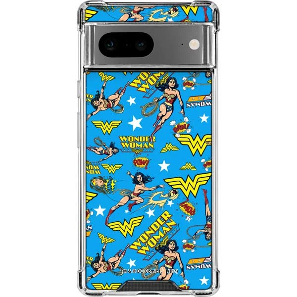 Put your Wonder Woman fandom on display with the “Wonder Woman Blast” Google Pixel Clear Case. The “Wonder Woman Blast” Google Pixel Clear Case design showcases a vibrant blue background with an all-over Wonder Woman pattern. This Skinit Wonder Woman Clear Case for Google Pixel guards your Google Pixel smartphone from dust, dirt and scratches in a minimalistic yet stylish way. The Wonder Woman Blast Pixel 7 Clear Case is finished with a premium 3M Wonder Woman vinyl decal and includes a raised front bezel for added screen protection.