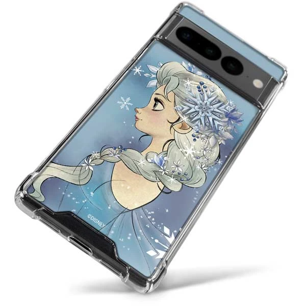Represent your favorite Frozen Disney character with this stunning Elsa “Side Portrait” Google Pixel Clear Case. This Elsa “Side Portrait” design showcases Elsa’s gorgeous features with some dreamy snowflakes, making this Clear Case a truly magical way to accessorize your Google Pixel. The Elsa Side Portrait Google Pixel Clear Case is built with transparent phone case materials to shield your Pixel smartphone from daily dust, scratches and wear and tear. Equipped with a 4 Corner Air-Pocket Shock Bumper and a raised front bezel, this Frozen phone case allows you to protect your Pixel 7 Pro in a stylish, minimalistic way with added protection for your phone’s screen. Completed with the Elsa Side Portrait 3M vinyl decal skin on the back of the case, you’ll love how this is Frozen Google Pixel Clear Case looks on and protects your smartphone.