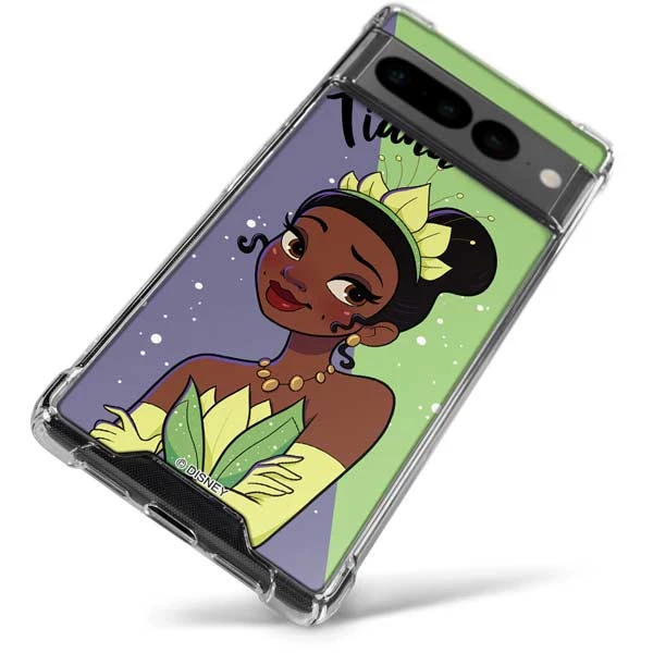 If Tiana is your favorite Disney princess, then you need this Tiana Clear Case protecting your Google Pixel! With pops of green and purple, this Tiana Google Pixel Case makes for the perfect Disney accessory. The Tiana Google Pixel Clear Case is built with transparent phone case materials to shield your Pixel smartphone from daily dust, scratches and wear and tear. Equipped with a 4 Corner Air-Pocket Shock Bumper and a raised front bezel, this Disney Princess phone case allows you to protect your Pixel 7 Pro in a stylish, minimalistic way with added protection for your phone’s screen. Completed with the Tiana 3M vinyl decal skin on the back of the case, you’ll love how this is Disney Princess Google Pixel Clear Case looks on and protects your smartphone.