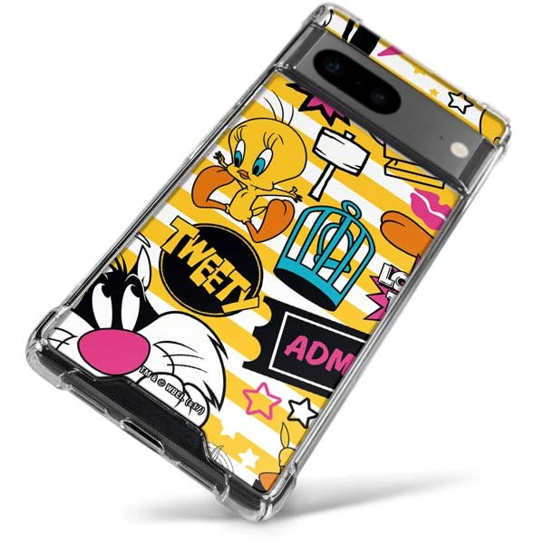 Combine a bright, colorful pattern with two classic Looney Tunes characters and you get the “Tweety and Sylvester Striped Patches” Google Pixel Clear Case! Created by Skinit and Looney Tunes, you’re guaranteed to love the way the “Tweety and Sylvester Striped Patches” design hugs your Google Pixel while keeping it protected from everyday minor wear and tear. This Skinit Looney Tunes Clear Case for Google Pixel guards your Google Pixel smartphone from dust, dirt and scratches in a minimalistic yet stylish way. The Tweety and Sylvester Striped Patches Pixel 7 Clear Case is finished with a premium 3M Looney Tunes vinyl decal and includes a raised front bezel for added screen protection.