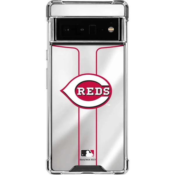 A Skinit Cincinnati Reds Google Pixel Clear Case is crafted with transparent phone case materials to guard your Pixel 6 Pro smartphone from everyday drops, scratches and dust. The 4 Corner Air-Pocket Shock Bumper makes this Pixel 6 Pro case a must-have accessory if you want to shield your Google Pixel in a stylish, minimalistic way. Decorated with the Cincinnati Reds Home Jersey 3M vinyl decal skin, you’ll love how this is Cincinnati Reds Clear Case for Pixel 6 Pro looks on your Google smartphone!