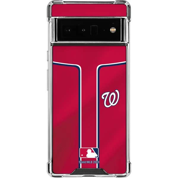 A Skinit Washington Nationals Google Pixel Clear Case is crafted with transparent phone case materials to guard your Pixel 6 Pro smartphone from everyday drops, scratches and dust. The 4 Corner Air-Pocket Shock Bumper makes this Pixel 6 Pro case a must-have accessory if you want to shield your Google Pixel in a stylish, minimalistic way. Decorated with the Washington Nationals Alternate Jersey 3M vinyl decal skin, you’ll love how this is Washington Nationals Clear Case for Pixel 6 Pro looks on your Google smartphone!