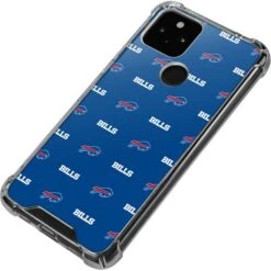The Buffalo Bills Blitz Series Google Pixel Clear Case features a step and repeat pattern of the Buffalo Bills official team logo on top of a blue background. This Bills Google Pixel Case design is officially licensed by the NFL and one of a kind Bills Case perfect for any Buffalo fan. Make this Buffalo Bills Google Pixel Case from Skinit yours today. A Buffalo Bills Google Pixel Clear Case is the perfect way to not only protect your Pixel smartphone, but do so in a stylish, minimalistic way that’s also unique. This Buffalo Bills Pixel 5a 5G case is decorated with the Buffalo Bills Blitz Series vinyl decal and features a raised front bezel for added protection for your phone’s screen.