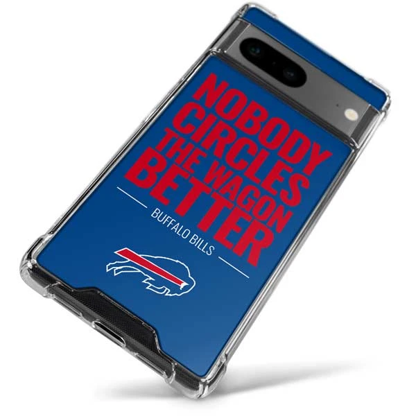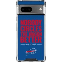 There’s no escaping your die-hard fandom for the Buffalo Bills with this officially licensed Buffalo Bills “Team Motto” Google Pixel Clear Case. Your Google Pixel will prove you’re a true fan with Buffalo’s “Nobody Circles The Wagons Better” mantra on display. This Skinit Buffalo Bills Clear Case for Google Pixel guards your Google Pixel smartphone from dust, dirt and scratches in a minimalistic yet stylish way. The Buffalo Bills Team Motto Pixel 7 Clear Case is finished with a premium 3M Buffalo Bills vinyl decal and includes a raised front bezel for added screen protection.