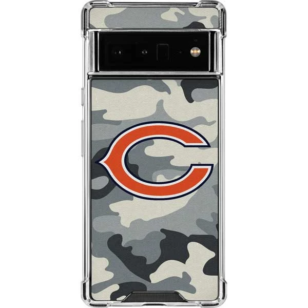 A Skinit Chicago Bears Google Pixel Clear Case is crafted with transparent phone case materials to guard your Pixel 6 Pro smartphone from everyday drops, scratches and dust. The 4 Corner Air-Pocket Shock Bumper makes this Pixel 6 Pro case a must-have accessory if you want to shield your Google Pixel in a stylish, minimalistic way. Decorated with the Chicago Bears Camo 3M vinyl decal skin, you’ll love how this is Chicago Bears Clear Case for Pixel 6 Pro looks on your Google smartphone!
