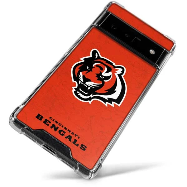 A Skinit Cincinnati Bengals Google Pixel Clear Case is crafted with transparent phone case materials to guard your Pixel 6 Pro smartphone from everyday drops, scratches and dust. The 4 Corner Air-Pocket Shock Bumper makes this Pixel 6 Pro case a must-have accessory if you want to shield your Google Pixel in a stylish, minimalistic way. Decorated with the Cincinnati Bengals – Alternate Distressed 3M vinyl decal skin, you’ll love how this is Cincinnati Bengals Clear Case for Pixel 6 Pro looks on your Google smartphone!