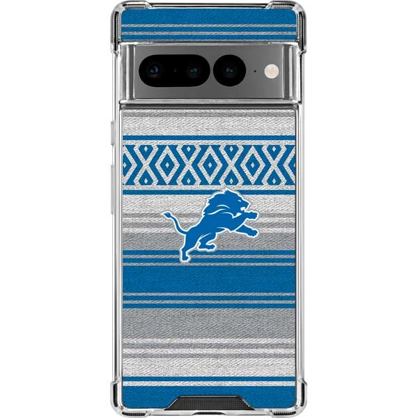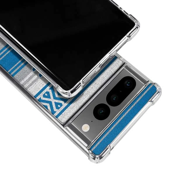 Lead the pack into opposing team territory with the Detroit Lions “Trailblazer” Google Pixel Clear Case from Skinit. Mexican blanket inspired design with Lions blue, grey and white team colors. Rep your favorite NFL® team on your Google Pixel anywhere you go. The Detroit Lions Trailblazer Google Pixel Clear Case is built with transparent phone case materials to shield your Pixel smartphone from daily dust, scratches and wear and tear. Equipped with a 4 Corner Air-Pocket Shock Bumper and a raised front bezel, this Detroit Lions phone case allows you to protect your Pixel 7 Pro in a stylish, minimalistic way with added protection for your phone’s screen. Completed with the Detroit Lions Trailblazer 3M vinyl decal skin on the back of the case, you’ll love how this is Detroit Lions Google Pixel Clear Case looks on and protects your smartphone.