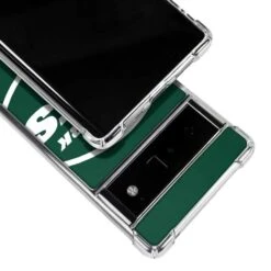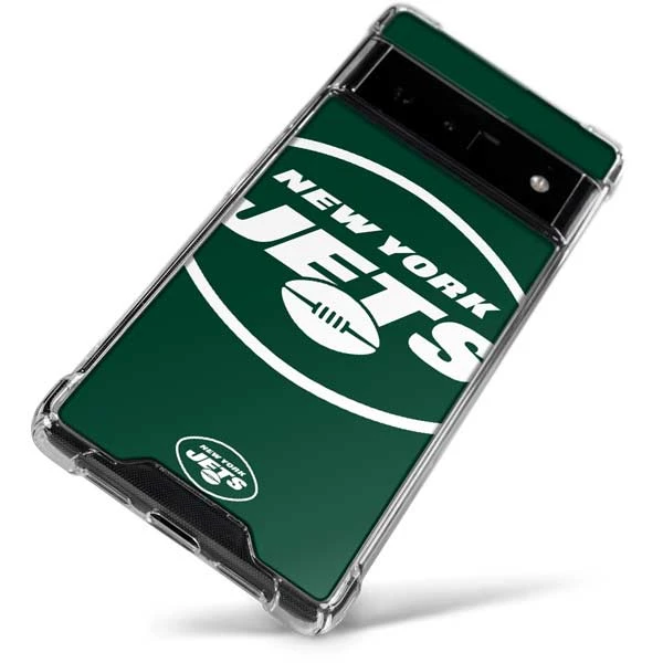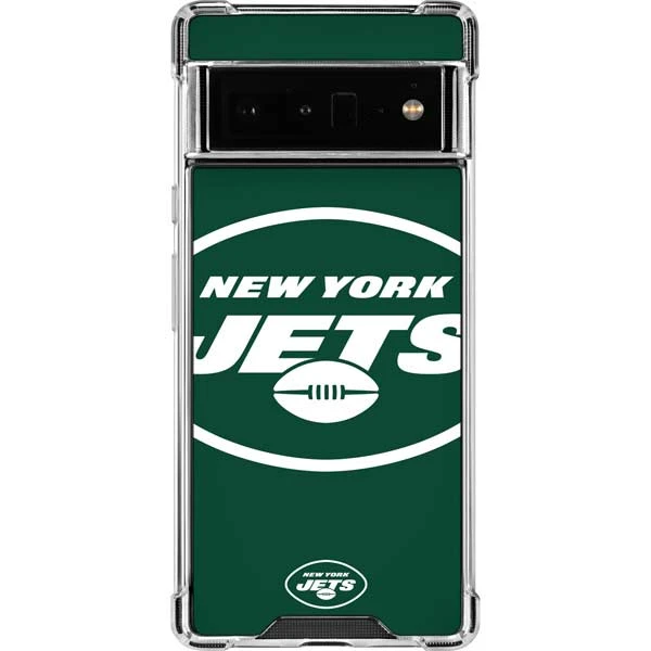 A Skinit New York Jets Google Pixel Clear Case is crafted with transparent phone case materials to guard your Pixel 6 Pro smartphone from everyday drops, scratches and dust. The 4 Corner Air-Pocket Shock Bumper makes this Pixel 6 Pro case a must-have accessory if you want to shield your Google Pixel in a stylish, minimalistic way. Decorated with the New York Jets Large Logo 3M vinyl decal skin, you’ll love how this is New York Jets Clear Case for Pixel 6 Pro looks on your Google smartphone!