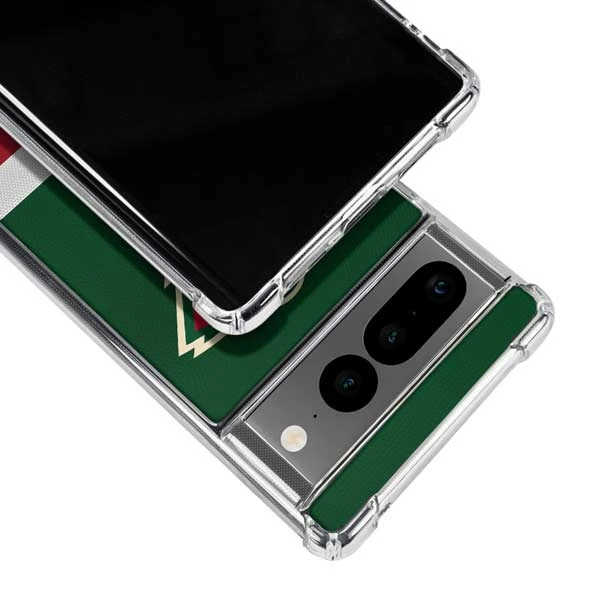 The Minnesota Wild Jersey Google Pixel Clear Case is built with transparent phone case materials to shield your Pixel smartphone from daily dust, scratches and wear and tear. Equipped with a 4 Corner Air-Pocket Shock Bumper and a raised front bezel, this Minnesota Wild phone case allows you to protect your Pixel 7 Pro in a stylish, minimalistic way with added protection for your phone’s screen. Completed with the Minnesota Wild Jersey 3M vinyl decal skin on the back of the case, you’ll love how this is Minnesota Wild Google Pixel Clear Case looks on and protects your smartphone.