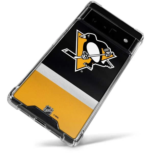 Skinit x NHL collaborated to create the Pittsburgh Penguins Jersey Google Pixel Clear Case. This Officially Licensed Pittsburgh Penguins Jersey Google Pixel Clear Case shows off what your favorite players wear on the ice all season long. Protect and personalize your Google Pixel smartphone with Skinit’s Pittsburgh Penguins Jersey Clear Case! This Pittsburgh Penguins Pixel 6a phone case is lightweight and perfect for protection against accidental daily wear and tear and drops. Finished with the Pittsburgh Penguins Jersey decal skin, this transparent Pittsburgh Penguins case for Google Pixel is a must-have!