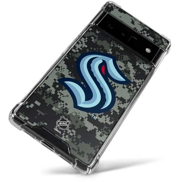 The NHL® Seattle Kraken Camo Google Pixel Clear Case features a versatile camo design with the official Kraken team logo in the center. This Seattle Kraken Google Pixel Case makes for a must-have NHL® accessory for your Google Pixel. A Skinit Seattle Kraken Google Pixel Clear Case is crafted with transparent phone case materials to guard your Pixel 6 Pro smartphone from everyday drops, scratches and dust. The 4 Corner Air-Pocket Shock Bumper makes this Pixel 6 Pro case a must-have accessory if you want to shield your Google Pixel in a stylish, minimalistic way. Decorated with the Seattle Kraken Camo 3M vinyl decal skin, you’ll love how this is Seattle Kraken Clear Case for Pixel 6 Pro looks on your Google smartphone!