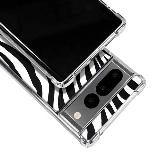 Simple and classic never goes out of style! The Zebra Print Google Pixel Clear Case design by Skinit shows a black and white zebra print that will instantly add some fun to your Google Pixel. The Zebra Print Google Pixel Clear Case is built with transparent phone case materials to shield your Pixel smartphone from daily dust, scratches and wear and tear. Equipped with a 4 Corner Air-Pocket Shock Bumper and a raised front bezel, this Black phone case allows you to protect your Pixel 7 Pro in a stylish, minimalistic way with added protection for your phone’s screen. Completed with the Zebra Print 3M vinyl decal skin on the back of the case, you’ll love how this is Black Google Pixel Clear Case looks on and protects your smartphone.